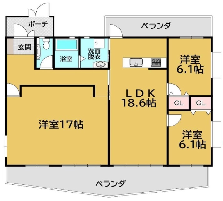 100㎡超の広々とした3LDK(4LDKへ変更可能)。3面採光、2面バルコニーで明るく風通しの良いお部屋です。徒歩5分の場所にサンエー食品館建設中。